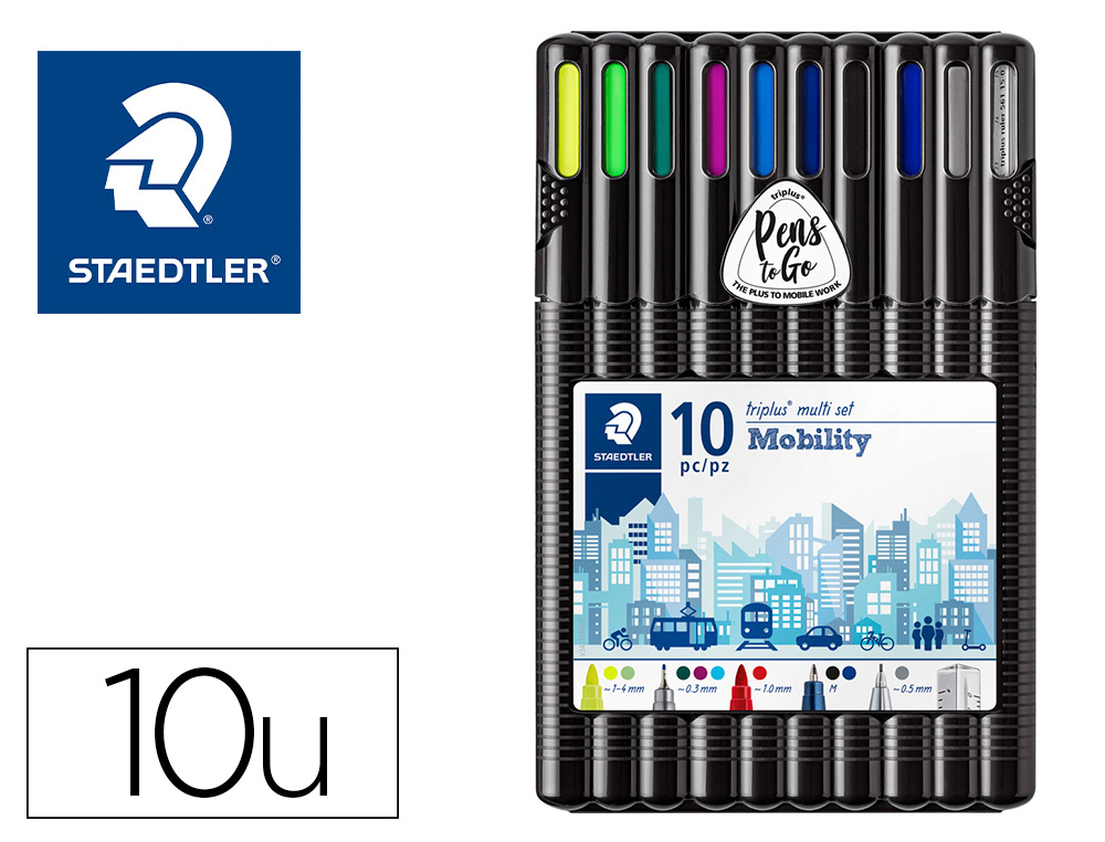 Etui staedtler triplus multi set 10 unites 4 feutres fineliner assortis 1 broadliner noir 4 surligneurs