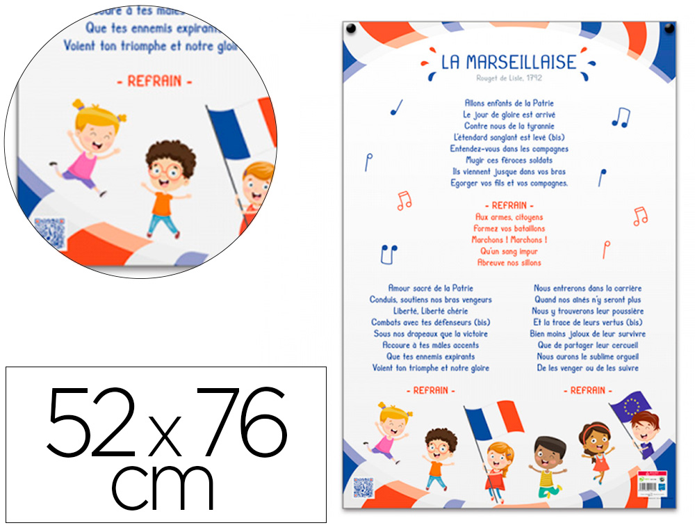 Poster pedagogique la marseillaise institutionnelle bouchut grandremy pellicule effacable a sec 52x76cm