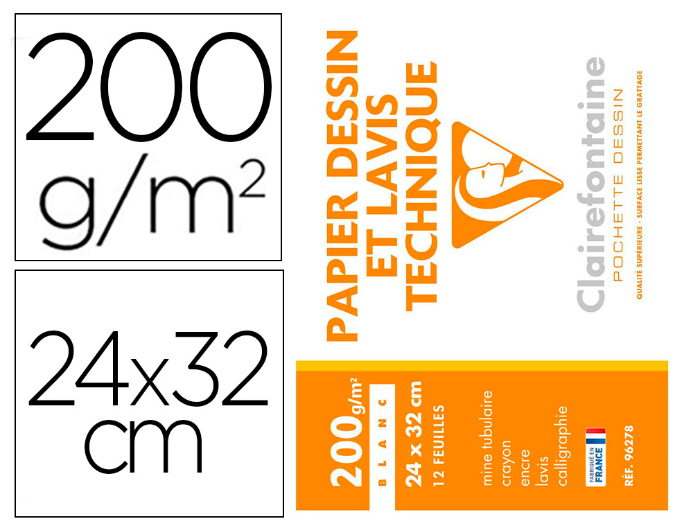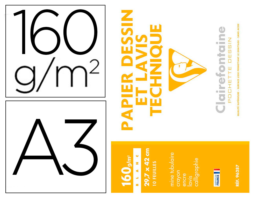 Pochette dessin et lavis clairefontaine papier 200g surface lisse format . format a3 29,7 x 42cm 10 feuilles