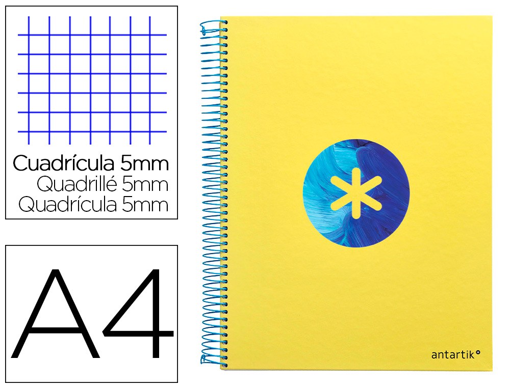 Cahier spirale antartik a4 240p 90g remborde 5x5mm microperfore 5 bandes 4 trous coloris jaune moutarde