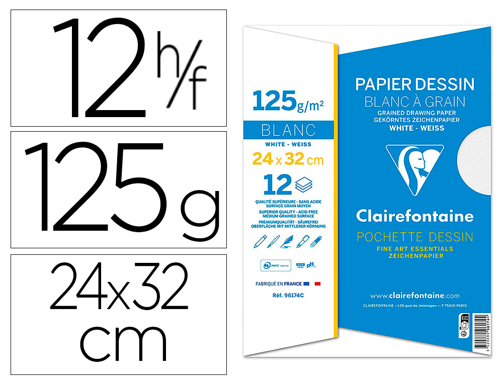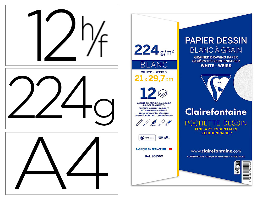 - Grammage : 180 g/m², parfait pour les techniques sèches telles que le crayon, le fusain, ou le pastel.