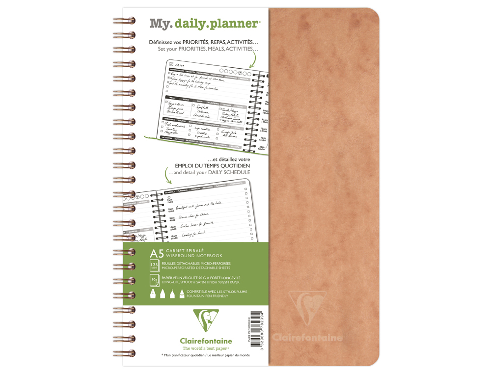 Cahier clairefontaine my dailyplanner nomaddict reliure integrale 148x210mm 250p detachables reglure
