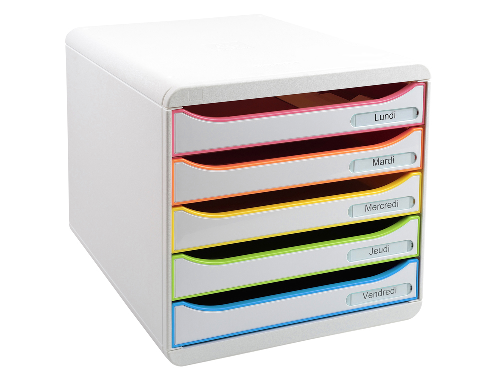 Le Module de Classement Exacompta Modulo Iderama à 5 tiroirs est la solution idéale pour organiser vos documents au bureau ou à l'école. Son système de classement efficace et son design coloré Arlequin ajoutent une touche esthétique dynamique à tout espace de travail. Grâce à sa fermeture sécurisée à clé, vous pouvez avoir l'esprit tranquille en sachant que vos documents sensibles sont protégés.