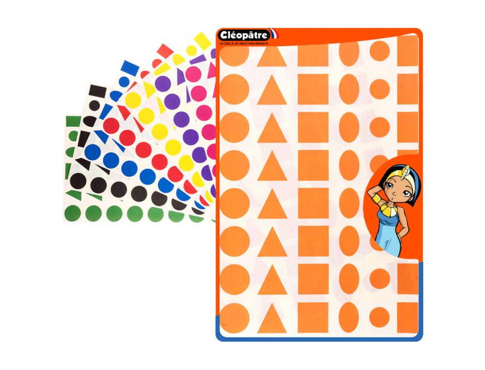 Gommette geometrique cleopatre diam 18mm 4 coloris assortis ecopack de 4 boites 7200 gommettes + 4800 8mm