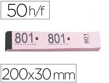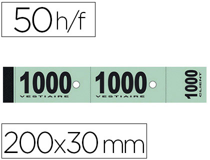 Bloc vestiaire piqué elve 3 coupons perforés détachables numérotés 1/1000 30x200mm 50 feuillets coloris bleu