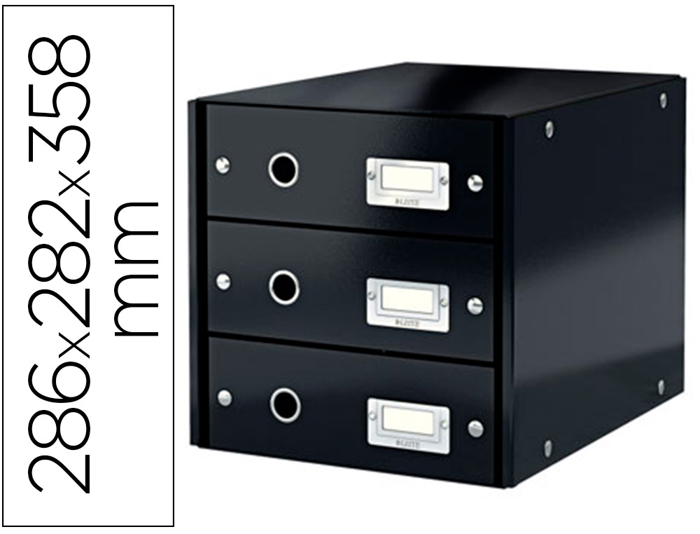 Boîte classement leitz click&store 4 tiroirs carton fort 286x282x358mm porte-étiquette oeillet préhension coloris noir